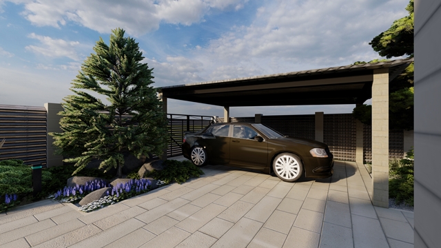 🌿 Организовали зону парковки под навесом с новогодней елью - для интеграции с ландшафтом;
